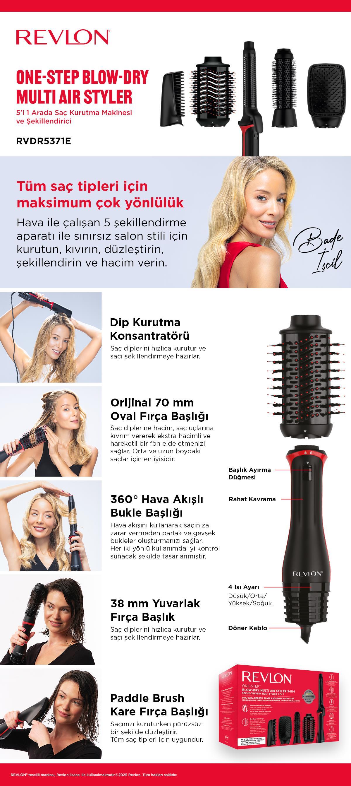 Revlon One Step Blow Dry Multi Air Styler 5'i 1 Arada Saç Kurutma Makinesi ve Şekillendirici RVDR5371E