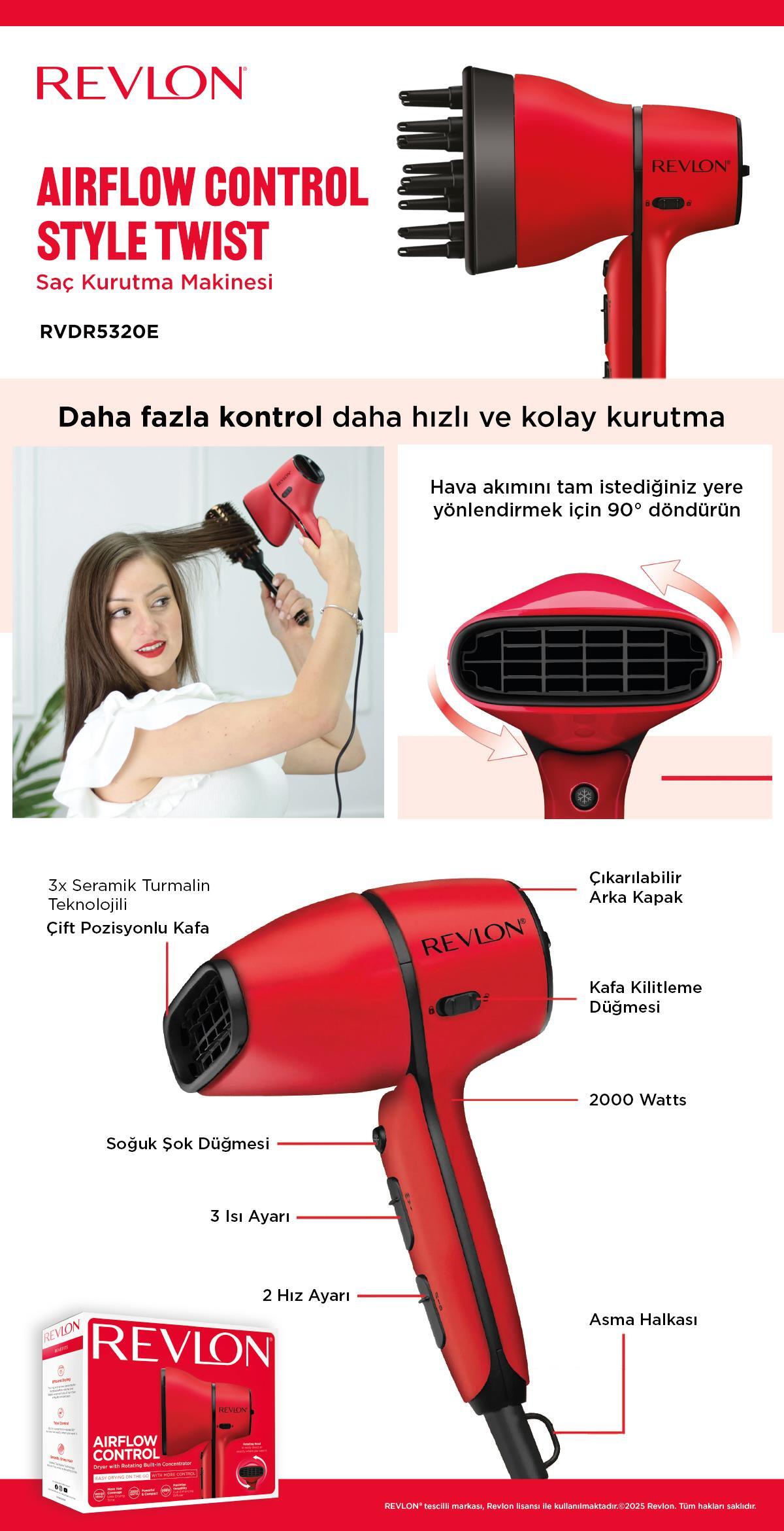 Revlon Airflow Control Style Twist Döner Başlıklı Saç Kurutma Makinesi 2000 Watt RVDR5320E